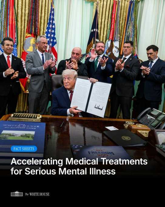 Today, President Donald J. Trump took historic action to remove barriers on psychedelic treatments for serious mental illness — delivering new hope to millions of Americans, especially our veterans. 🇺🇸